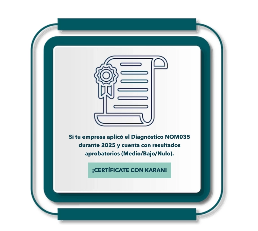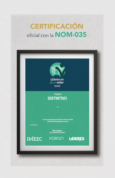 Si tu Empresa cuenta con calificación aprobatoria en la NOM035, certifícate como una Empresa Líder en Bienestar con Karan.