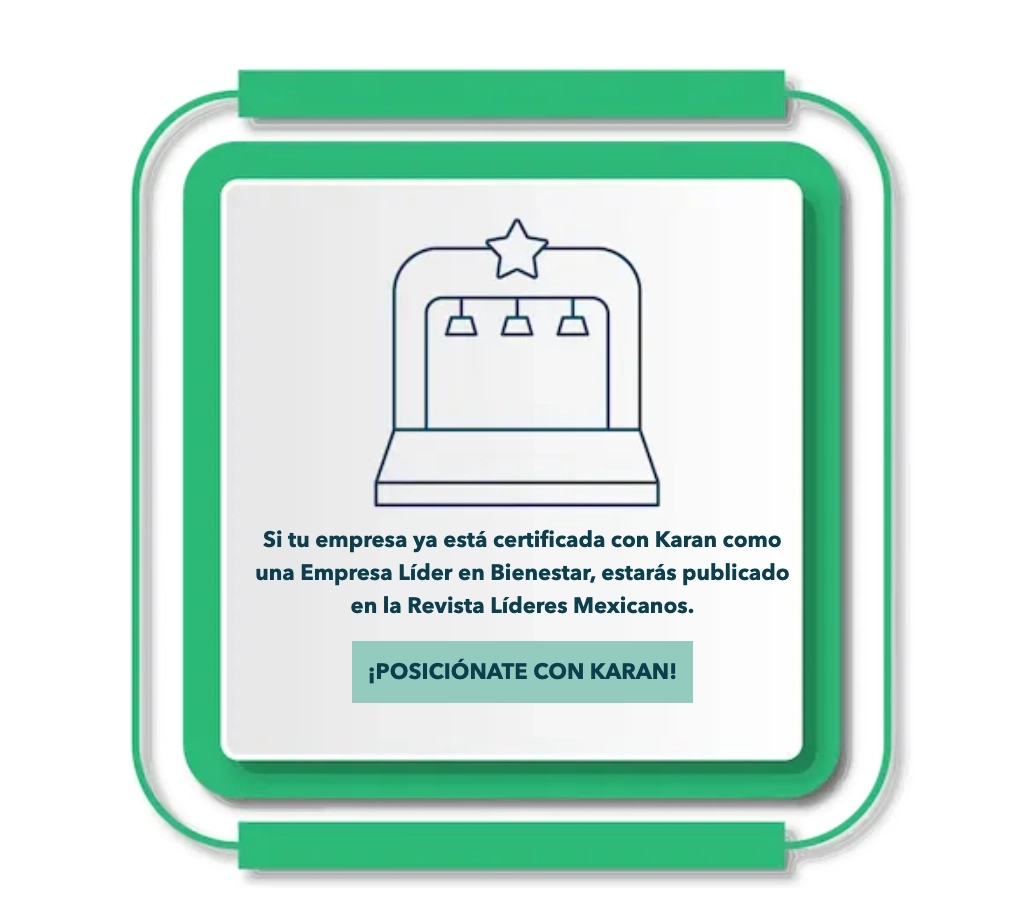 Si tu empresa ya está certificada con Karan como una Empresa Líder en Bienestar, estarás publicado en la Revista Líderes Mexicanos.